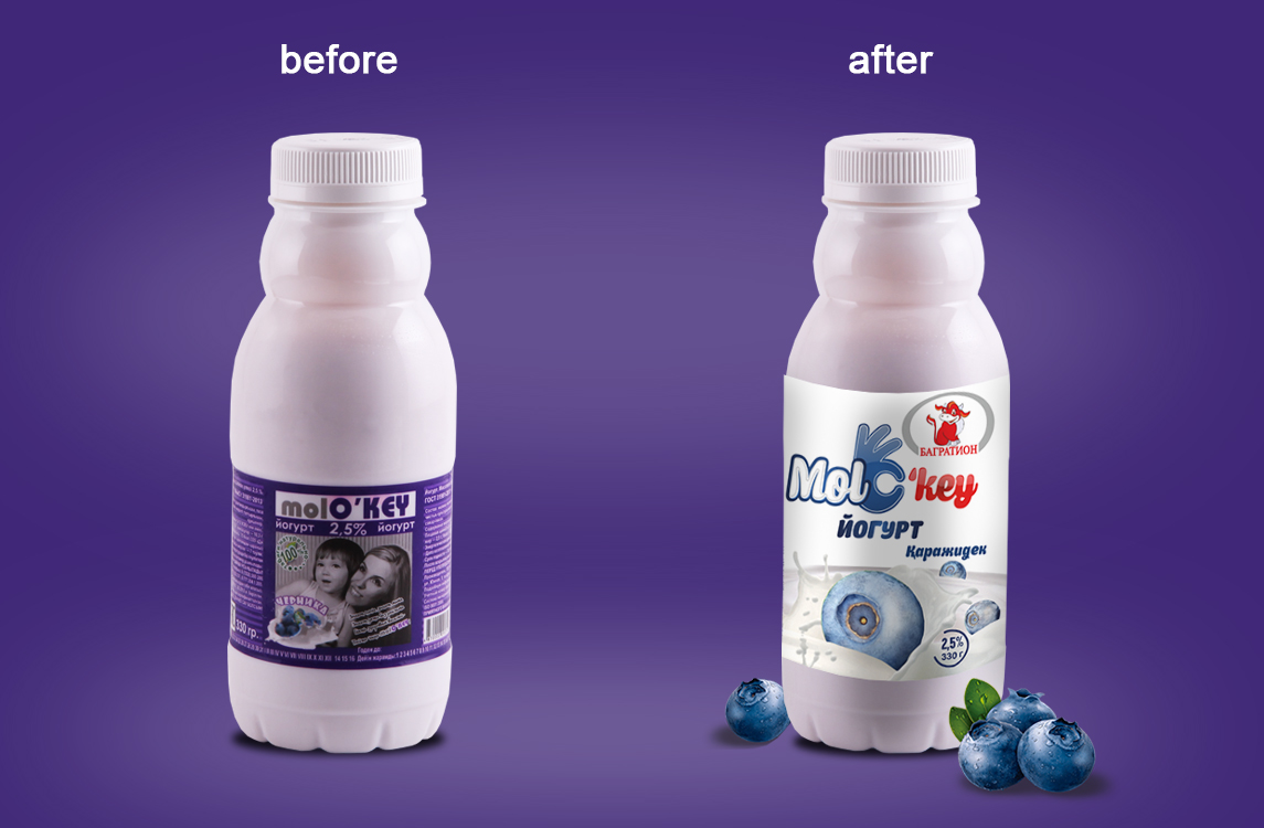 Анализ ассортимента и политики сбыта показали, падение продаж в категории «питьевые йогурты» . Такая проблема возникла из-за отсутствия качественной айдентики, из за чего ТМ «Molo'key» уходила в низкий ценовой сегмент.